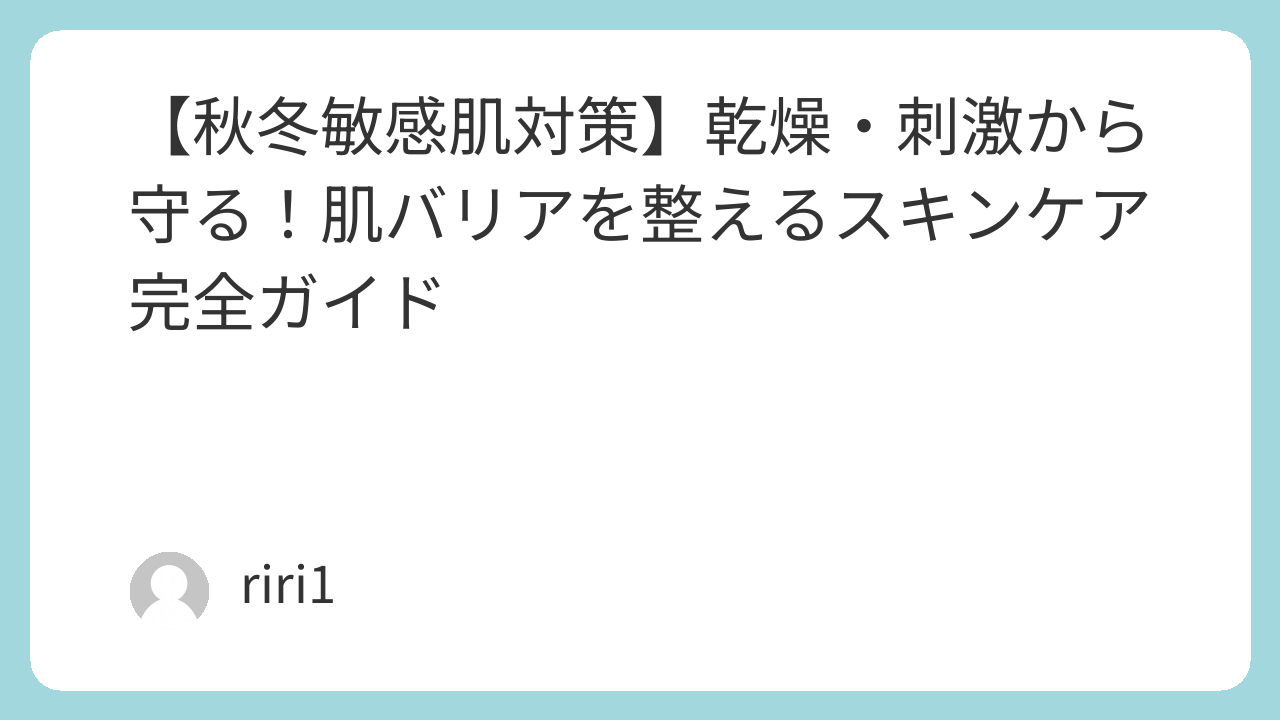 更に掘り下げた記事↪【秋冬敏感肌対策】乾燥・刺激から守る!肌バリアを整えるスキンケア完全ガイド